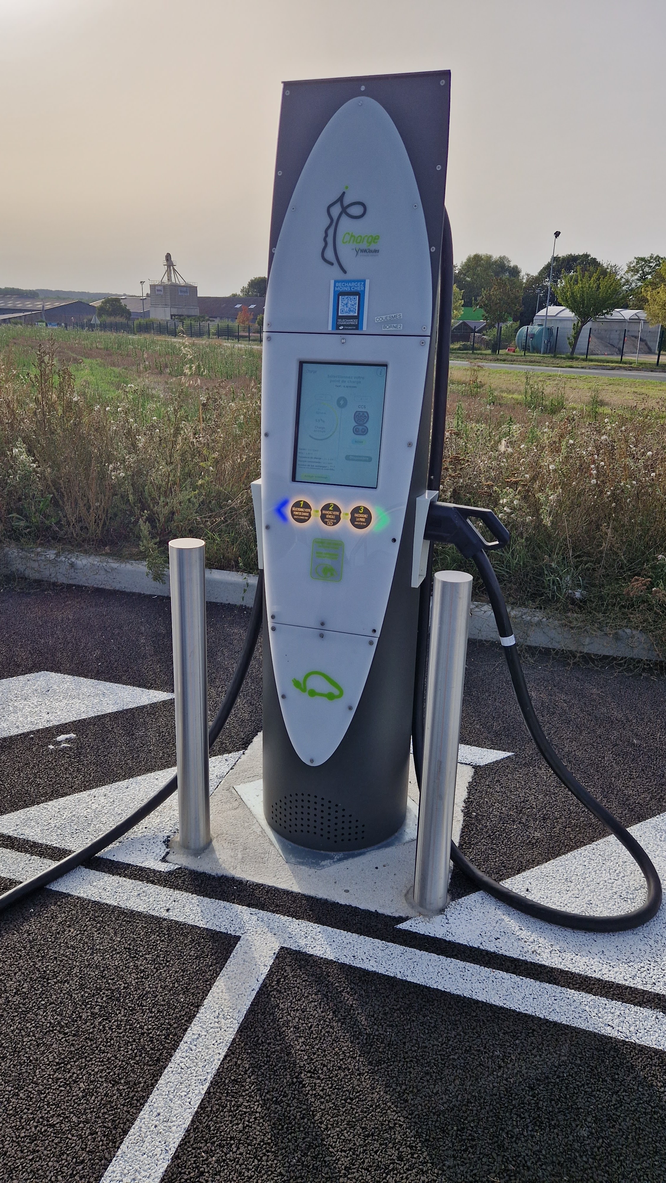 Vraie petite station de charge dédiée, il y a de la place pour manoeuvrer. Les bornes sont très bien, il y a 2 stèles avec sur chacune 1 CCS 160kW et 1 CCS 320kW. Elles acceptent tout les moyens de paiement et le coût est franchement faible (0.3 euros/kW ! Pourvu que ça dure). Bref simple et efficace. Par contre, gros bémol (-2 étoiles), la station est paumée au milieu des champs, en sortie de ZA. Le premier commerce (bar/restau) est à 900m. J'ai chargé un jour très ensoleillé et j'ai cuit sur place... J'étais content de repartir au bout de 20 minutes car il n'y a pas un coin d'ombre à moins de 400m à la ronde... Je me demande quand est-ce que les opérateurs (ou les communes ?) vont comprendre l'intérêt de positionner ce genre de station à proximité immédiate des commerces et points de restauration (surtout lorsqu'il y a largement la place ou, comme c'est le cas ici, un parking, sur la même route, mais 500m plus proche du bourg...)... C'est vraiment dommage de ne pas en avoir profiter.