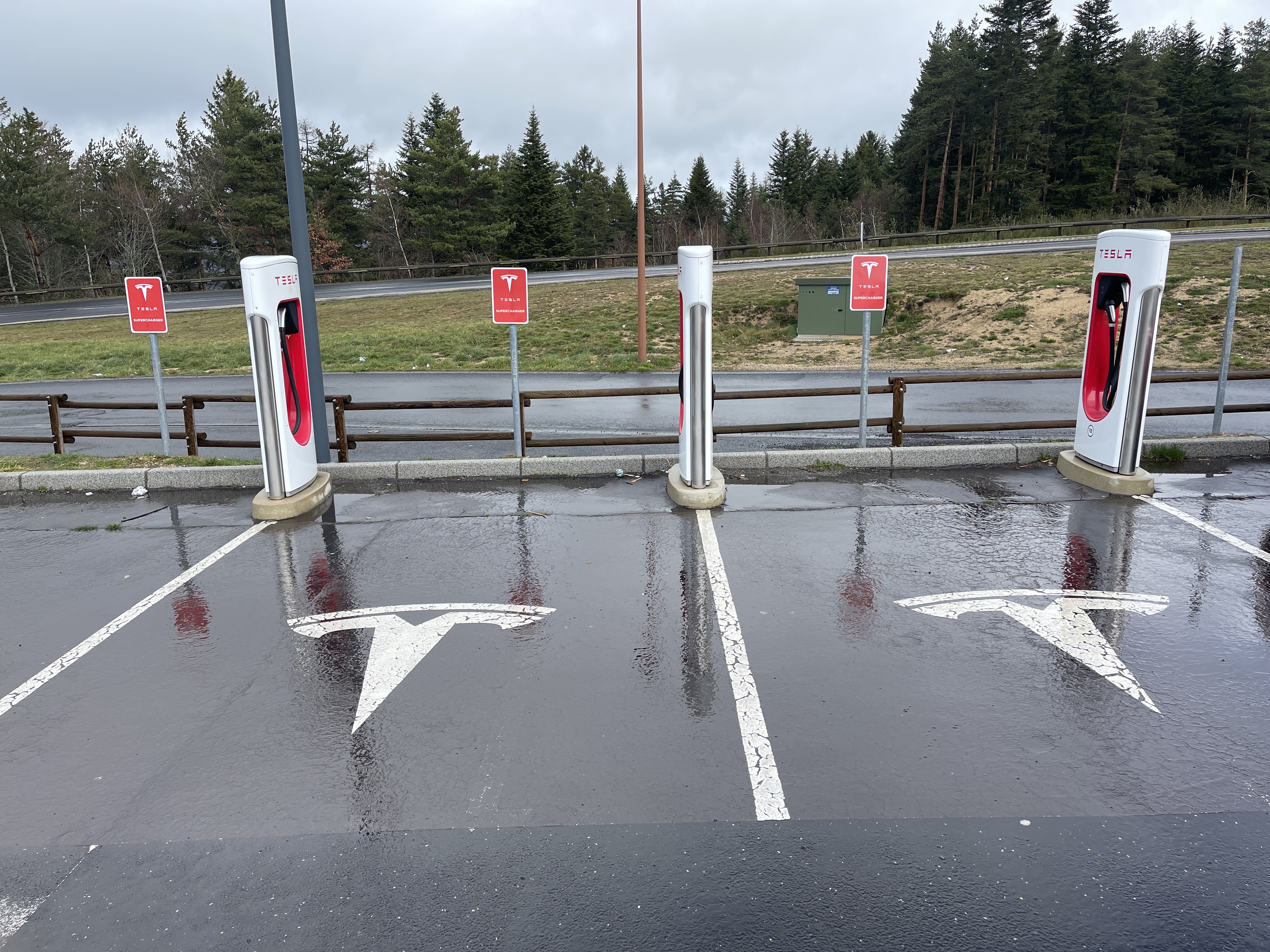 Superchargeur Tesla classique. Un peu à l'écart, sinon tout va bien. Prix un peu plus élevés, mais ça reste correct.