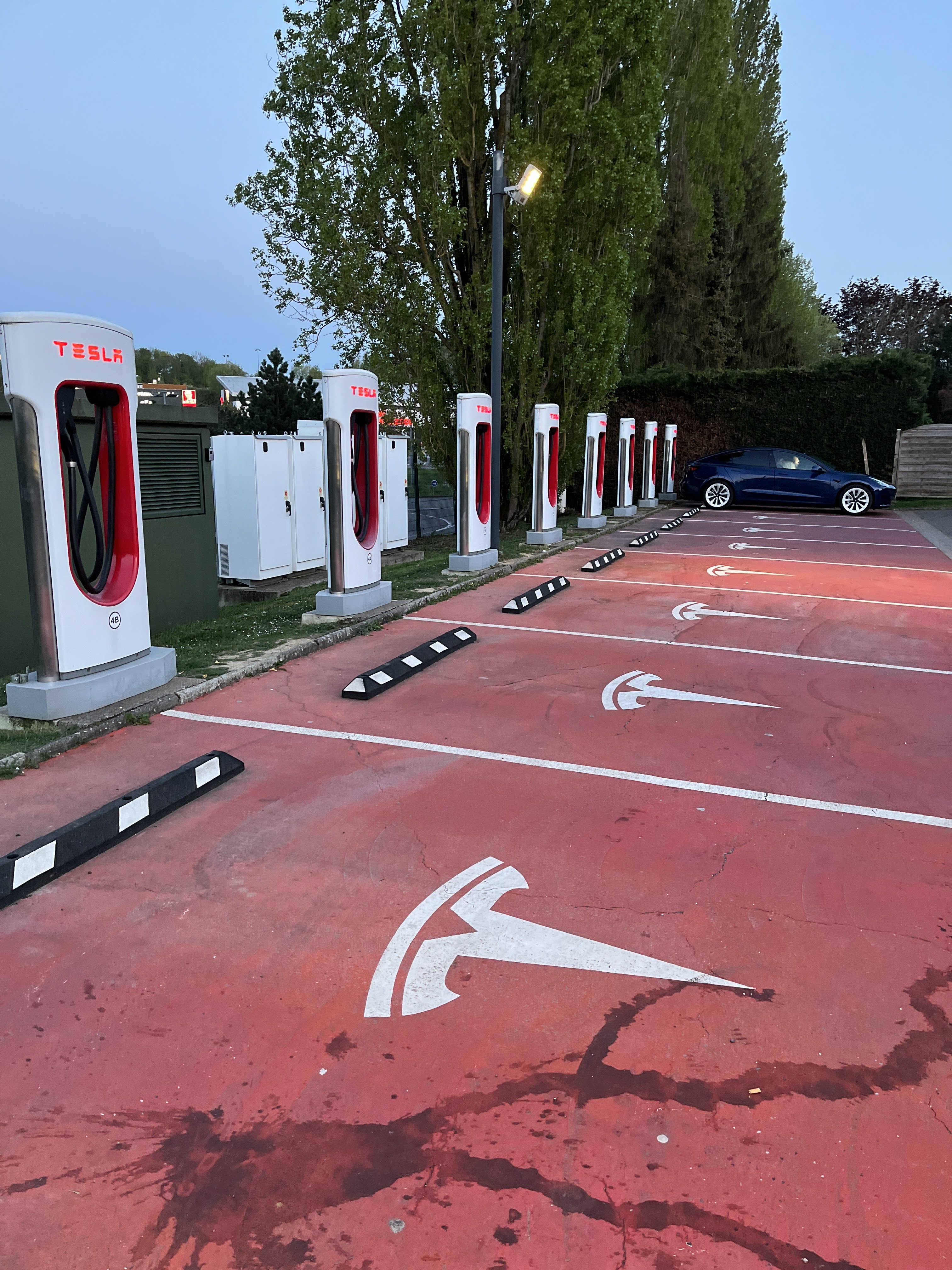 Superchargeur bien entretenu .lieu ideal entre hôtel et supermarché. Tout est à proximité a pied